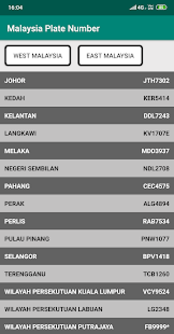 Malaysia Plate Number uygulaması, kullanıcıların Malezya'nın tüm eyaletlerindeki en güncel araç plaka numaralarını öğrenmelerini sağlar. Bu ücretsiz yaşam tarzı uygulaması, yeni bir araç almayı planlayan kullanıcılar için oldukça faydalıdır. Uygulama, plaka numaralarını kontrol etme ve hoş bir plaka numarası seçme sürecinde rehberlik sunar. Ancak, plaka numaraları yalnızca referans amaçlıdır ve kesin bilgi için JPJ Malezya'ya başvurulması gerektiği unutulmamalıdır.